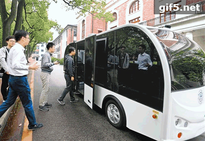 无人驾驶小巴在上海交大校园内进行实验性运行。在校园内的3个站点,乘车者可以扫描二维码呼叫无人小巴接载,该小巴不仅能自主驾驶,还能自动躲避行人。在目前实验性运行阶段,该小巴时速限定15公里,车内最多搭载8人。