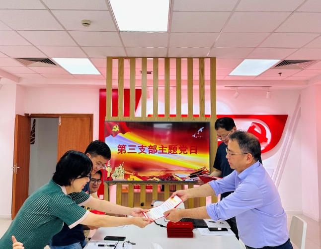 6月25日下午,省信息院第三党支部组织全体支部党员在滨江院区“向习近平总书记看齐”党建馆开展主题党日活动。院党委委员、副院长吕国昌参加活动。 活动分二个阶段进行:第一阶段,根据院《关于深入开展学习贯彻习近平新时代中国特色社会主义思想主题教育实施方案》通知要求,进行“学习贯彻习近平新时代中国特色社会主义思想·建功新征程”微党课宣讲。11位党员同志,围绕主题要求,从多重视角展开论述对习近平新时代中国特色社会主义思想的学习体会,坚持学懂弄通蕴含其中的世界观和方法论,深刻领悟贯穿其中的立场观点方法,用以指导工作实践。第二阶段,支部全体党员结合主题教育学习心得体会和个人工作实践,从自身实际出发展开了热烈的讨论交流,互学互鉴,在交流研讨中促提高,在相互学习中共进步。 会上,全体党员重读入党誓词,重温入党初心,支部还为9位党员颁发了政治生日贺卡,通过政治生日的仪式感,来提醒激励党员时刻不忘初心、牢记使命。 |