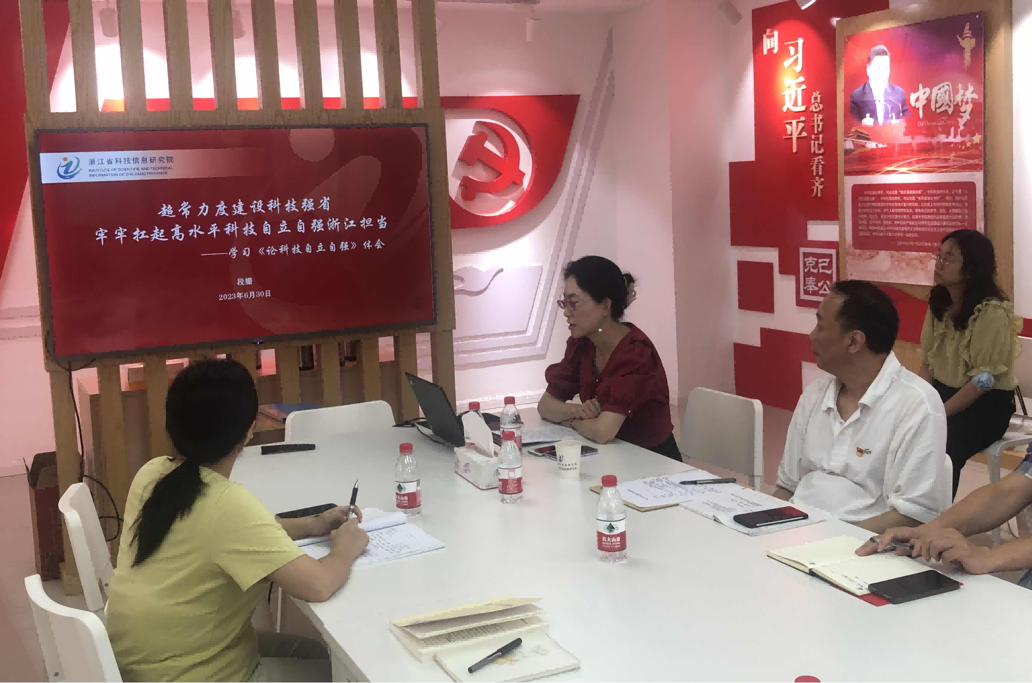 6月30日下午,根据院党委主题教育工作部署和支部工作计划安排,省信息院第一党支部组织全体党员在“向习近平总书记看齐”党建馆开展主题教育。 活动分三个阶段进行: 第一阶段,集体观看专题警示教育片《永远吹冲锋号》第一集,坚持正面学习、反面警示相结合,提醒全体党员时刻紧绷纪律之弦,从典型案例中汲取教训,扎紧扎牢拒腐防变思想篱笆。 第二阶段,院党委委员、副院长段姗为支部全体党员讲主题教育专题党课,围绕习近平总书记关于科技自立自强的重要论述深入阐述,紧密结合浙江创新发展的实际,带领大家全面学习领会、准确把握理解习近平新时代中国特色社会主义思想的实践伟力。 第三阶段,开展“学习贯彻习近平新时代中国特色社会主义思想·建功新征程”微党课宣讲。7位党员在深入学习的基础上,结合个人工作实践,围绕新发展理念、科技教育人才一体推进、人类命运共同体等主题进行交流分享,真正做到学思用贯通、知信行统一,用实际行动推动主题教育走深走实。 此外,支部还集体为5名党员同志过政治生日,并重温入党誓词,接受党性洗礼,铭记初心使命。 |
