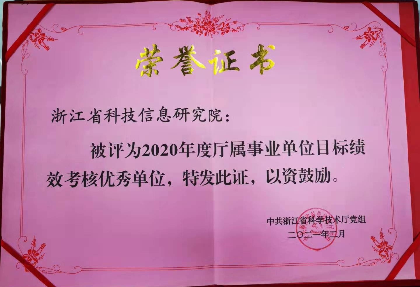 | 我院喜获2020年度厅属事业单位目标绩效考核优秀 | |
