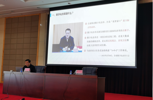 3月2日上午,我院组织召开了数字化改革专题学习会,俞锋华院长出席会议并讲话,胡芒谷副院长主持会议,陈登副院长、信息技术中心吕跃华主任分别作“数字化改革”专题报告,段姗副院长及院全体研究人员参加会议。 会上,陈登副院长作了《科技创新数字化改革建设思路》报告,在全面分析全省数字化改革当前形势和深度内涵的基础上,提出了科技创新数字化改革的建设目标、内容和进度安排。吕跃华主任作了《政府数字化改革工作思考》报告,重点介绍了科技创新应用建设的“任务树”、“四个体系”、“四张清单”等内容。 最后,俞锋华院长就我院下一步如何围绕数字化改革开展工作提出四点要求,他表示,要围绕数字化改革,充分发挥我院技术和智库支撑作用。一是提高政治站位,充分认识数字化改革的极端重要性;二是增强技术实力,为科技系统数字化改革工作提供技术支撑;三是发挥智库作用,为省委省政府数字化改革提供智慧支撑;四是勤练自身内功,全方位提升技术支撑以及智库研究水平和能力。
