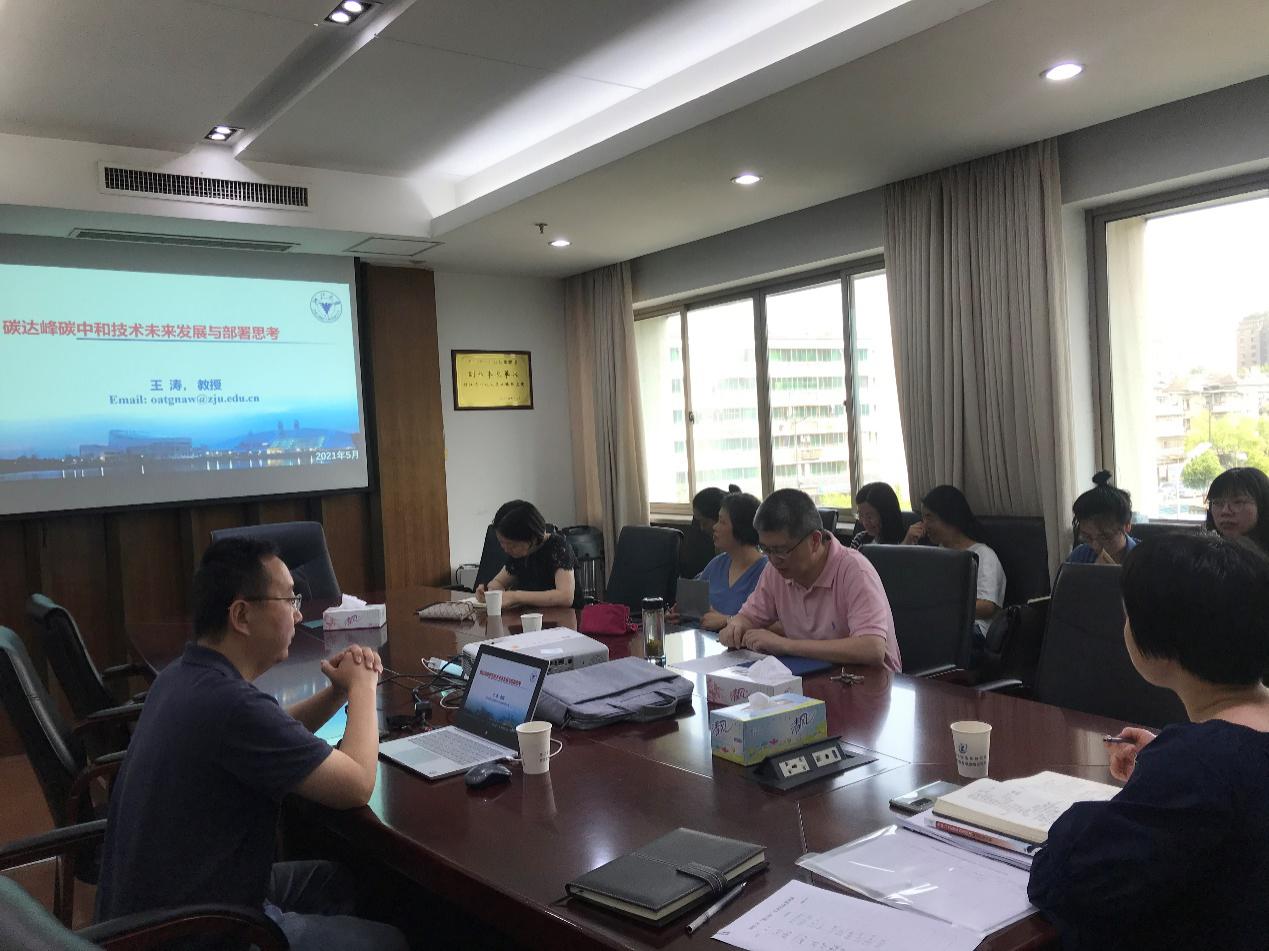 5月26日,以“碳达峰碳中和技术前沿与支撑政策思考”为主题的“智江南”专题学术论坛在杭州举行,本次论坛由院农村社发研究所主办,邀请浙江大学能源工程学院教授王涛作专题讲座。胡芒谷副院长出席论坛并主持,20名院科研人员参加论坛。 王涛教授从碳达峰碳中和的国际战略意义、我国面临的机遇与挑战、技术发展路径等方面作了详细报告,并就“如何从技术和政策两方面支撑浙江如期实现碳达峰”分享了独到见解,并与科研人员进行了深入的交流探讨。此次论坛为我院科研人员开展碳达峰碳中和研究工作拓宽了思路,提供了有益启示。 |