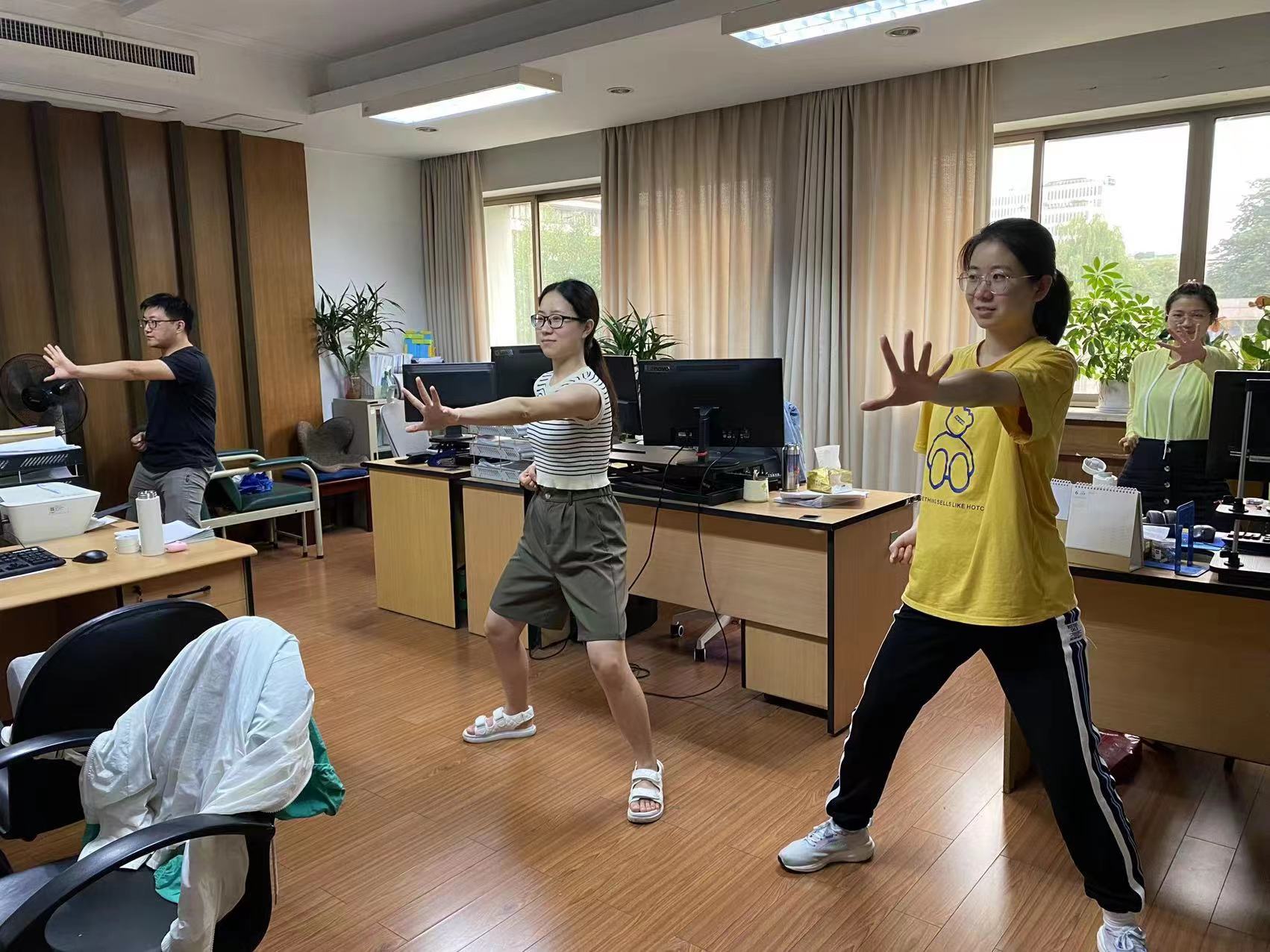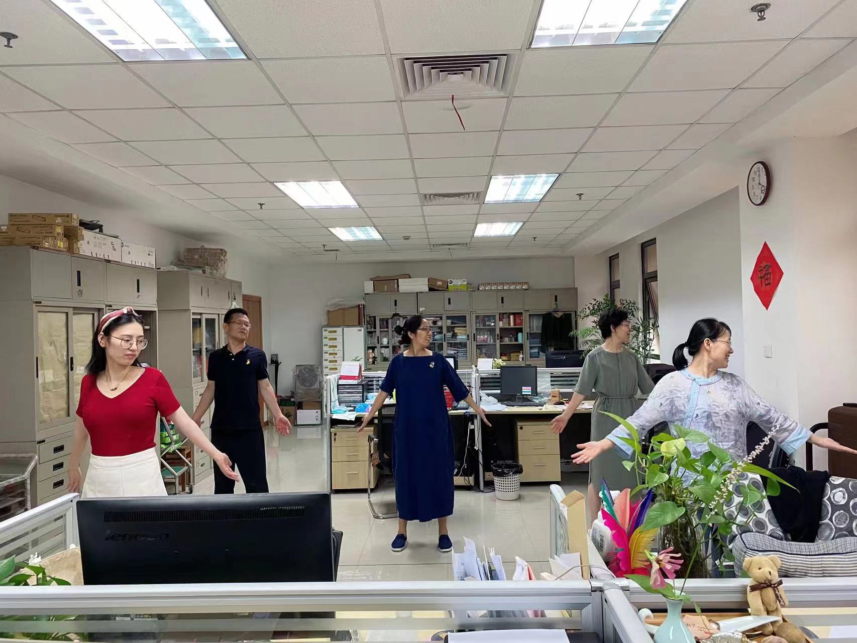 工间操制度将健康文化有效地融入到了八小时工作制之内,不仅推动全院干部职工形成了积极向上的“微运动”健康理念和习惯,也有效增强了干部职工的凝聚力和向心力,为打造具有我院鲜明辨识度的文化品牌,推动我院干部职工以更加健康的体魄和饱满的精神状态投入到我院最强大脑建设和全省科技创新事业提供强劲动力!