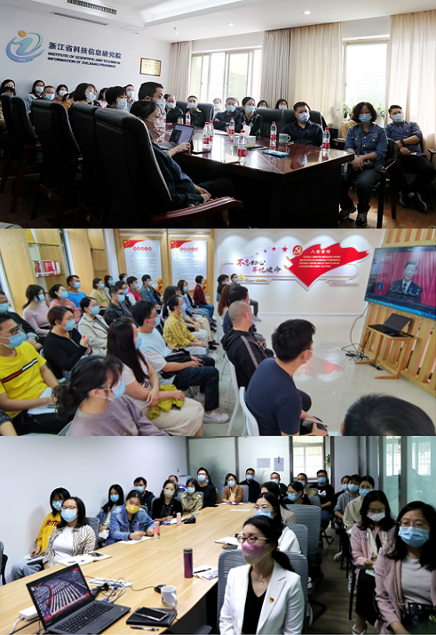 时代车轮滚滚向前,再次抵达重要历史性时点。10月16日上午10时,中国共产党第二十次全国代表大会在北京人民大会堂隆重开幕,习近平总书记代表第十九届中央委员会向大会作了题为《高举中国特色社会主义伟大旗帜 为全面建设社会主义现代化国家而团结奋斗》的报告。 院党委组织全体干部职工集中观看开幕会盛况。其中,院领导班子成员参加省科技厅组织的集中收看;其他院在职干部职工以党支部为单位,分别在环西院区会议室和滨江院区党建馆集体收看。 党的二十大是在迈上全面建设社会主义现代化国家新征程、向第二个百年奋斗目标进军的关键时刻召开的一次十分重要的大会。习近平总书记所作的报告明确宣示了党在新征程上高举中国特色社会主义伟大旗帜,全面贯彻习近平新时代中国特色社会主义思想,弘扬伟大建党精神,自信自强,守正创新,踔厉奋发,勇毅前行,为全面建设社会主义现代化国家、全面推进中华民族伟大复兴而团结奋斗!在以习近平同志为核心的党中央坚强领导下,我们如期全面建成了小康社会,党和国家事业取得历史性成就、发生历史性变革,创造了新时代中国特色社会主义的伟大成就,中国人民自信豪迈地站在了实现中华民族伟大复兴新的历史起点上。 会上,所有党员佩戴党徽、全神贯注。会后,党内外职工代表从温度、深度、广度,信念、信心、自豪等方面表达自己的感悟,句句饱含深情,掌声不绝于耳。 |