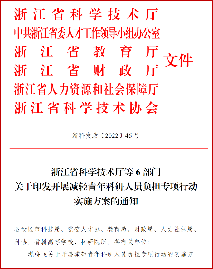 | 我院参与起草的《关于开展减轻青年科研人员负担专项行动的实施方案》由6部门联合发文 | |
