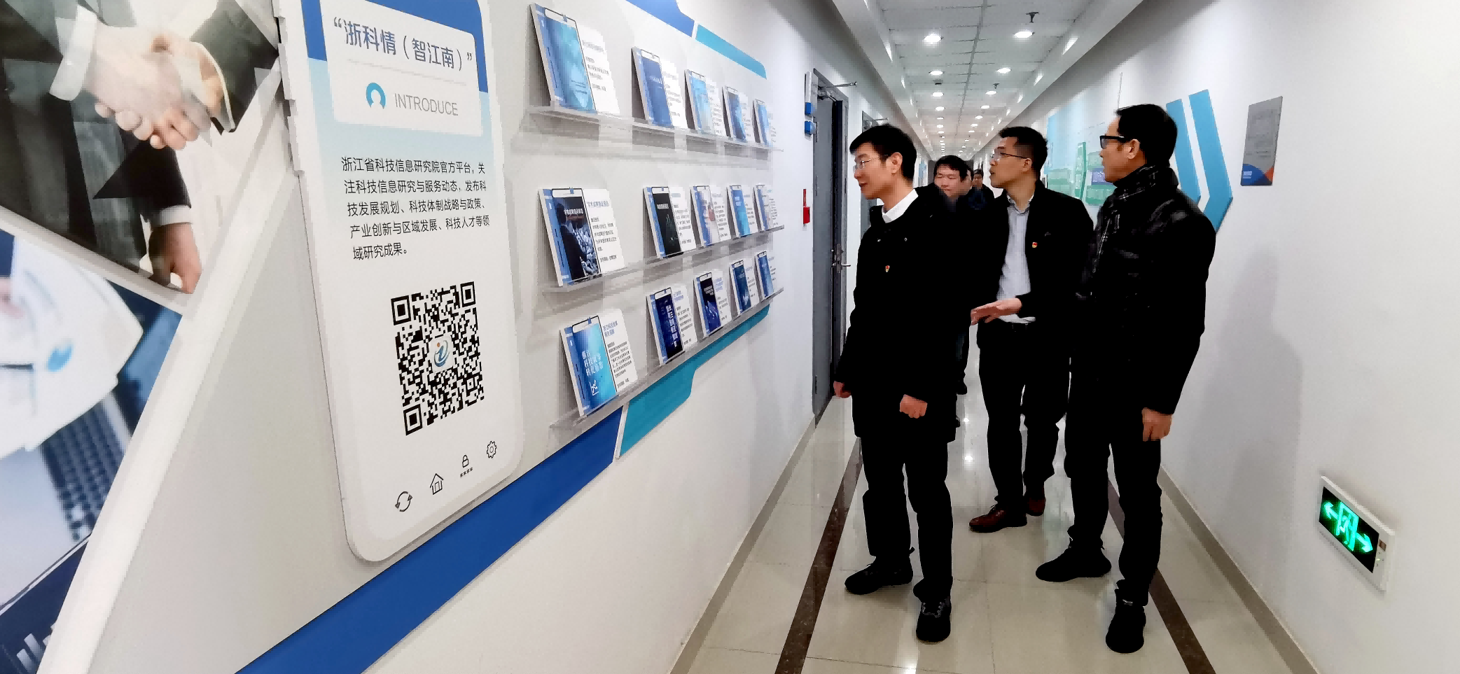 2月22日下午,省政府办公厅四处王建南处长、涂旭明副处长一行就创新深化和党建相关工作来我院调研,院党委书记、院长俞锋华,副院长吕国昌、陈登及相关人员参加交流。 俞锋华向调研组介绍了我院的党建工作、主要业务开展情况、相关科技成果和科技产品等,并共同前往我院滨江院区参观“向习近平总书记看齐”党建馆、科技查新中心及中国浙江网上技术市场发展史展厅。 双方就创新深化及党建工作等开展了讨论,并就下一步工作交换了意见。 |