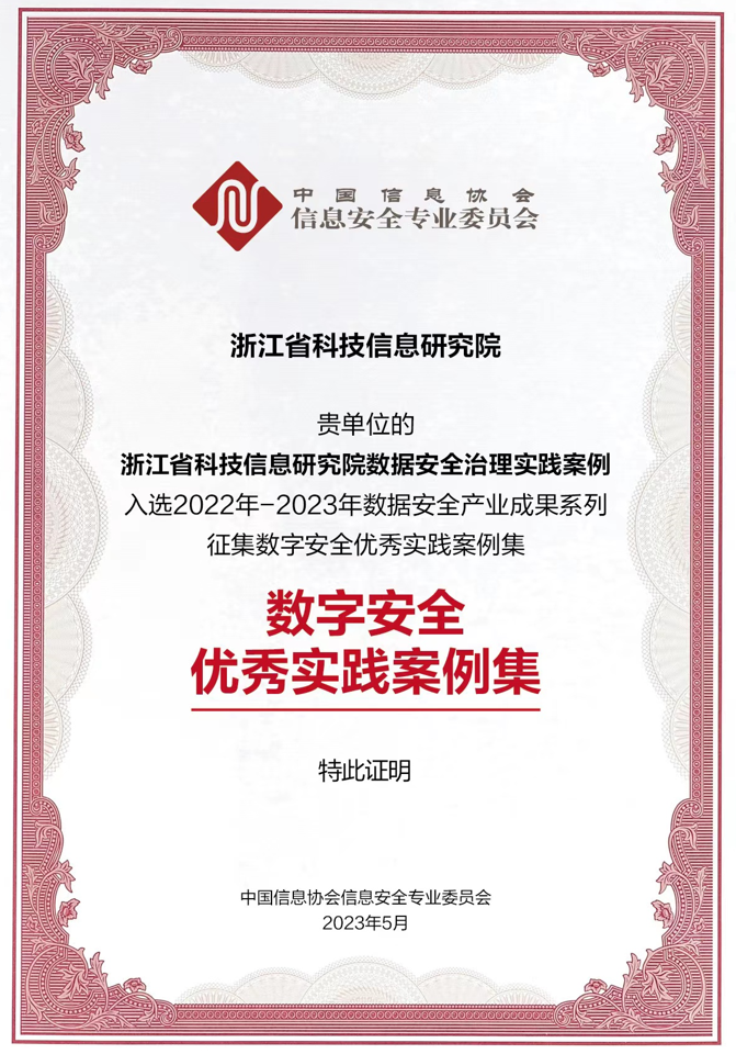 5月7日,中国信息协会安全专业委员会主办的“2022年-2023年数据安全产业成果系列征集-数字安全实践案例推优活动”正式公布十家优秀入选单位。浙江省科技信息研究院数据安全治理实践案例成功入选。本次案例评选由中国信息协会信息安全专业委员会组织,面向全社会开展优秀实践案例征集活动,所有申报单位材料经初审、评估、审批等多轮流程,最终评选出优秀实践案例10例。 本实践案例通过对内部现有资产状况、系统内部数据流转情况等进行梳理,并开展相应的风险评估、脆弱性、差距点分析,对整个数据安全治理过程进行完整规划,包括数据安全治理体系设计,管理体系设计,能力架构设计及相应的运营体系设计。 近年来,浙江省科技信息研究院深入贯彻习近平总书记关于网络强国的重要论述精神,深入落实党的二十大指导精神,基于《网络安全法》《数据安全法》《个人信息保护法》等法律法规,在数字化改革工作中,狠抓数字安全建设,成效显著。 |
