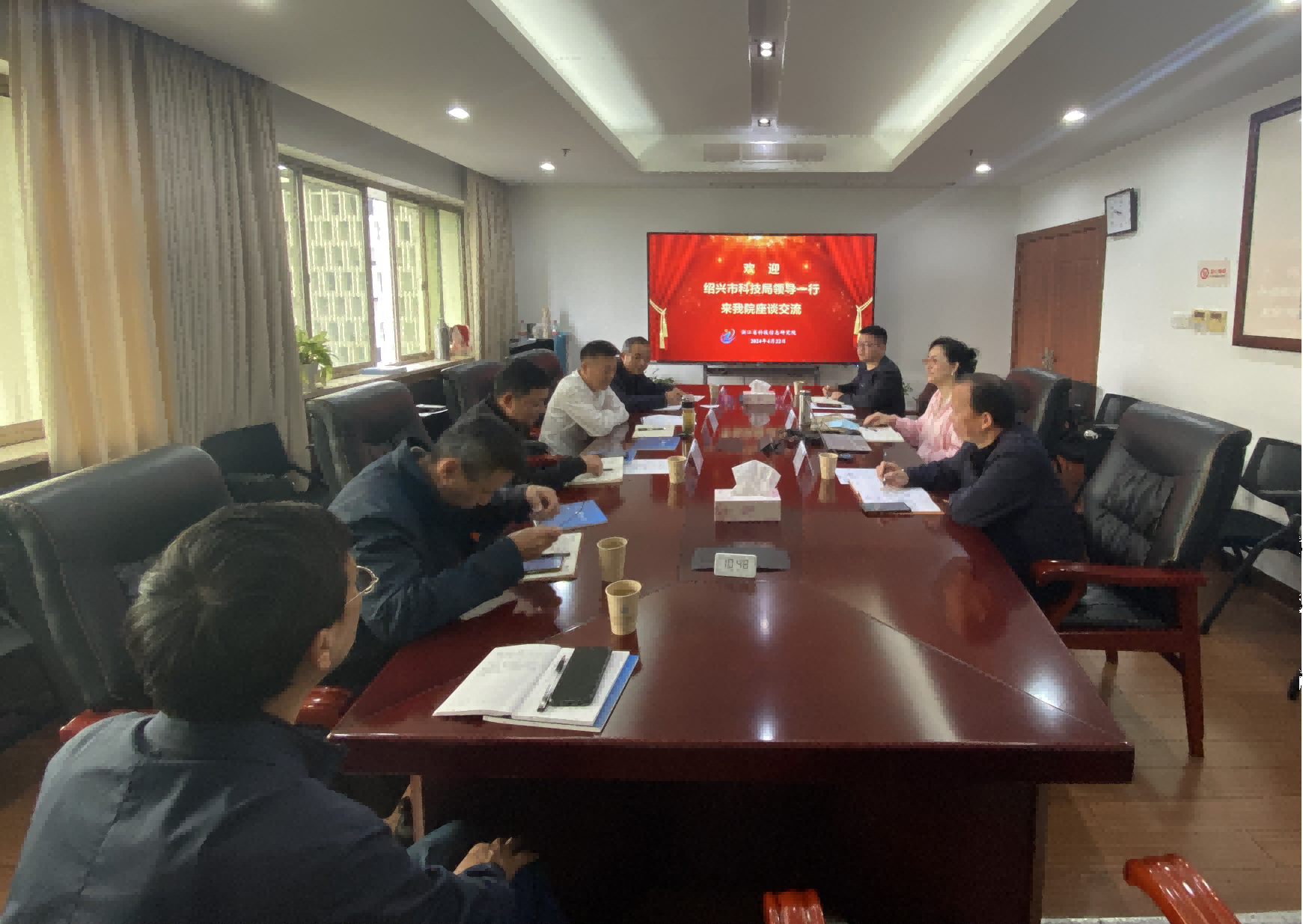 4月22日,绍兴市科技局党组成员严建林一行5人来省信息院调研座谈,省信息院副院长段姗主持会议,统计所、体系所负责人参加座谈。 会上,段姗对严建林一行表示欢迎,并介绍了省信息院基本情况及智库建设的做法成效。双方就科技统计、智库决策支撑等方面进行了深入研讨和交流。 |