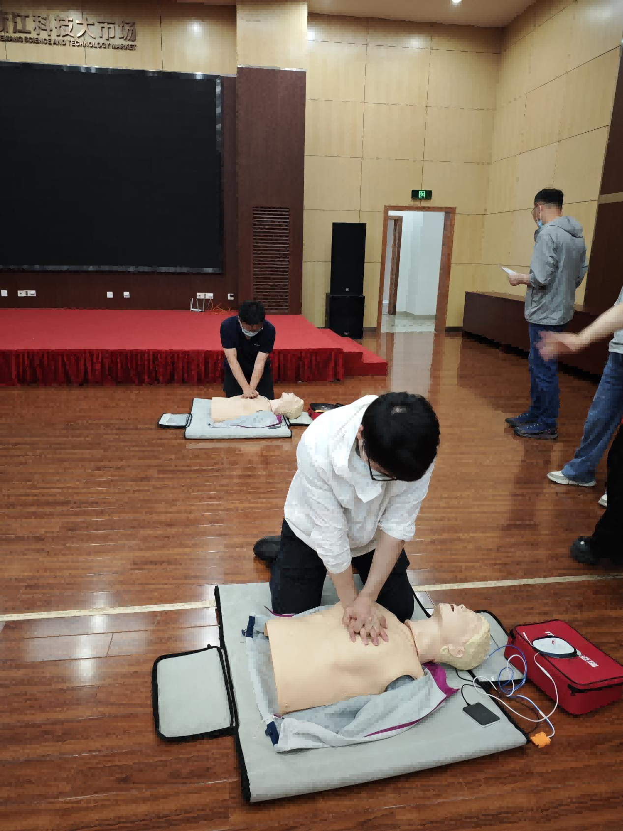 5月23-24日,省信息院组织开展院第9期政策解读与制度宣讲会——应急救护培训。吕国昌副院长主持会议,段姗副院长、全院干部职工约120人分两批参加培训。 培训现场,红十字救护师通过PPT讲解、视频演示、现场展示多种方式讲解并演示了心肺复苏术、AED使用操作、气道异物梗阻处理等急救理论知识和技能。通过理论与实操双重考验,参会人员均顺利取得由红十字会颁发的心肺复苏(CPR+AED)培训证书。大家纷纷表示,通过本次培训充分认识到了应急救护在日常工作和生活中的重要性,提升了面对意外伤害和突发事件的应变能力,在有需要的时候适时施以援手。 |