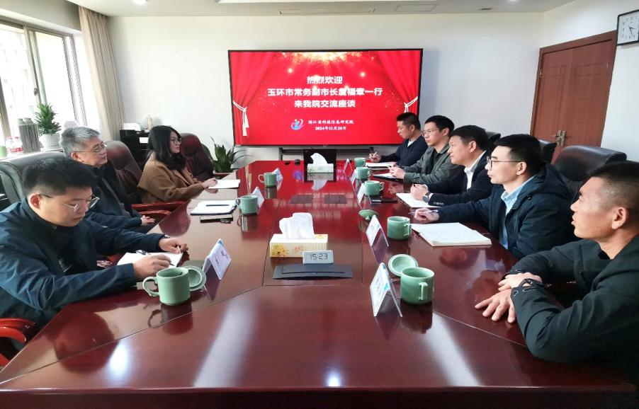 11月26日,玉环市常务副市长詹福章一行6人来省科技信息研究院调研座谈,省科技信息研究院副院长胡芒谷,区域所相关研究人员参加座谈。 会上,胡芒谷对詹福章副市长一行表示欢迎,并介绍了省科技信息研究院整体发展情况。双方就玉环市特色产业发展、“十五五”科技创新规划、省级高新区创建认定等方面进行了深入交流和讨论。双方表示今后要加强合作交流,共同推进实施玉环“培大育强”“招大引强”“科创领强”的三强战略。 |